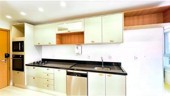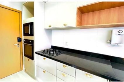 Cozinha montada com armários, cooktop e coifa, forno e microondas ( novos)