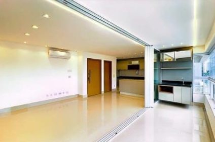 Ampla sala , varanda com cortina de vidro já com Windows blue