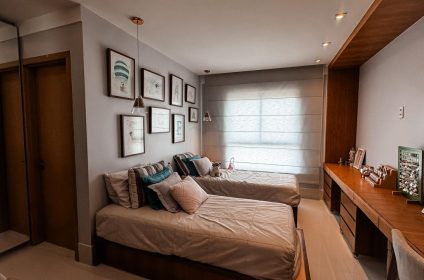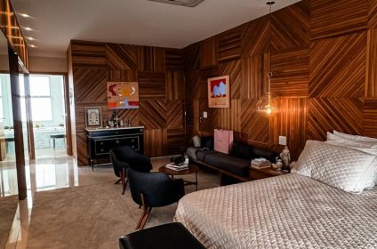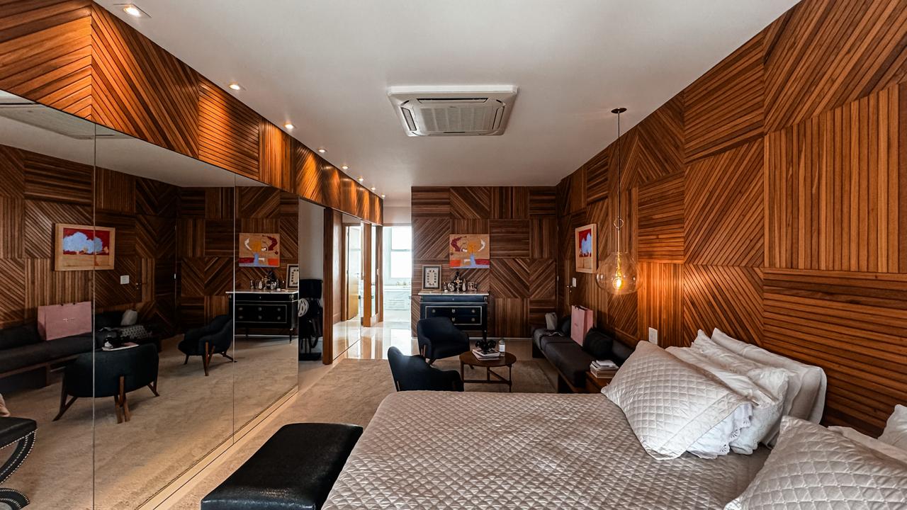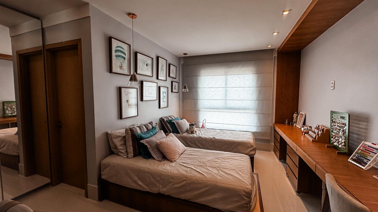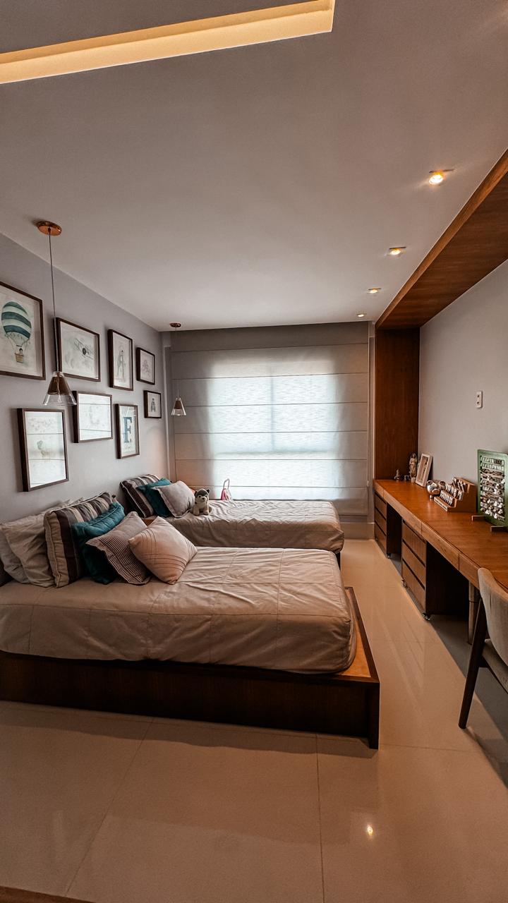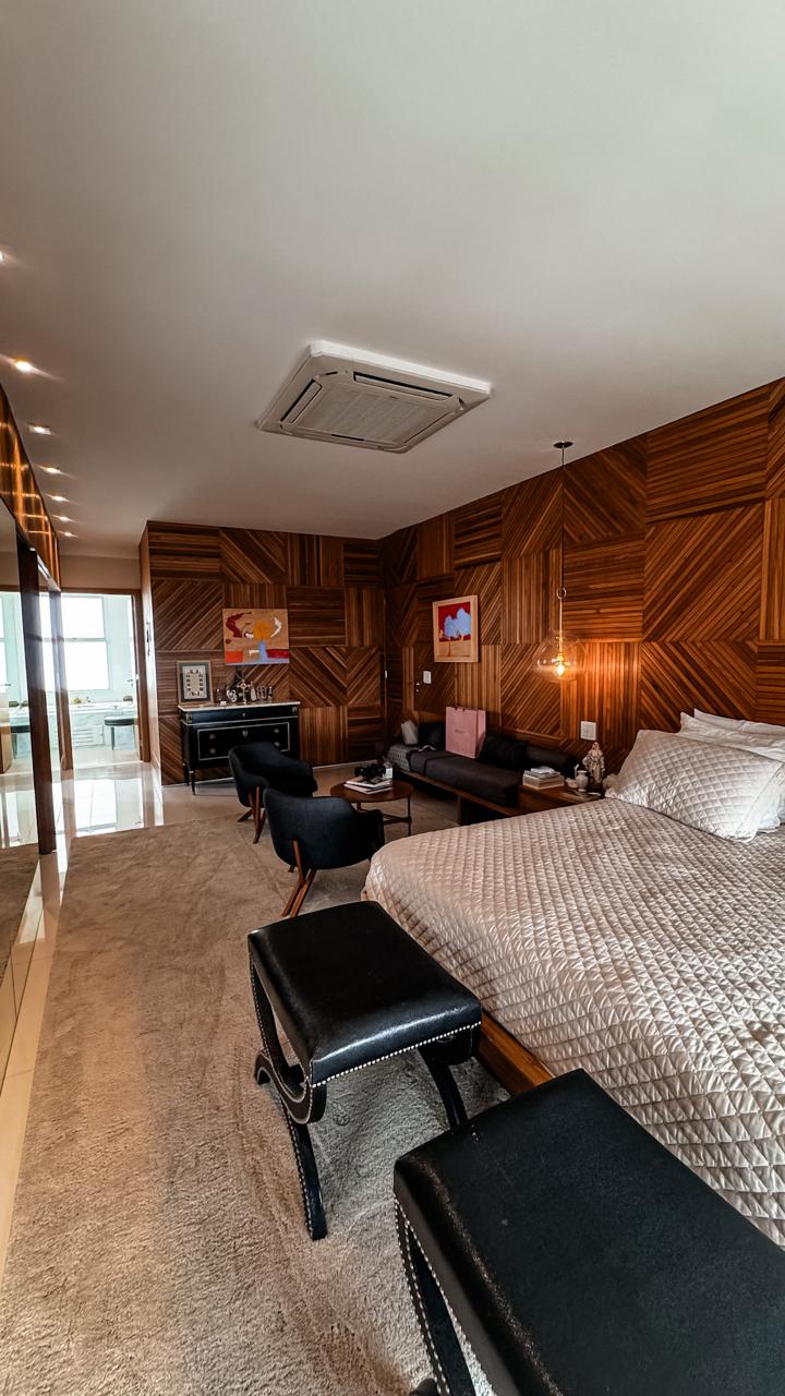 •4 suítes amplas e luxuosas, sendo 1 suíte master com banhos individuais para senhor e senhora