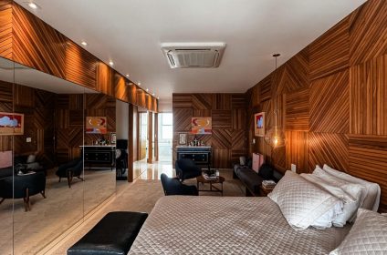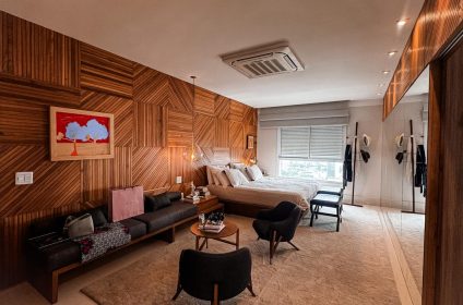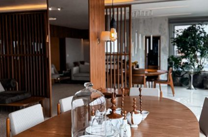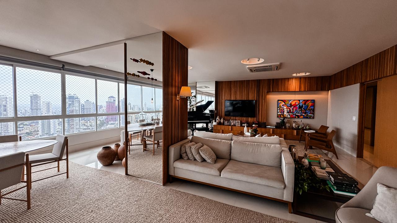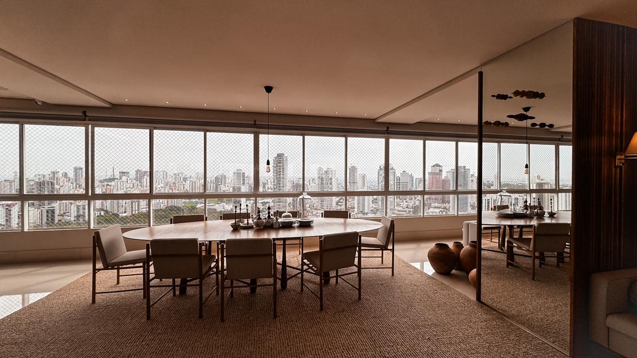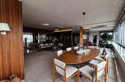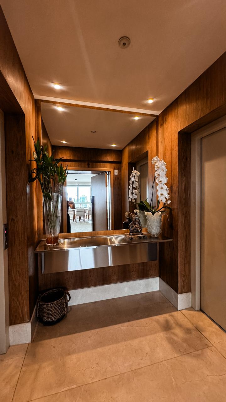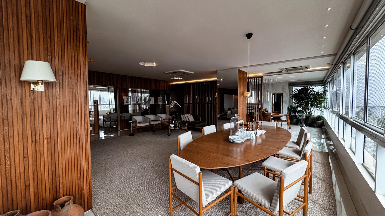 Um verdadeiro ícone de sofisticação e conforto. Este apartamento mobiliado de 363m², assinado por Léo Romano, ocupa um andar inteiro no prestigiado Condomínio Casa Opus Areião, oferecendo privacidade, requinte e uma vista panorâmica deslumbrante da cidade.