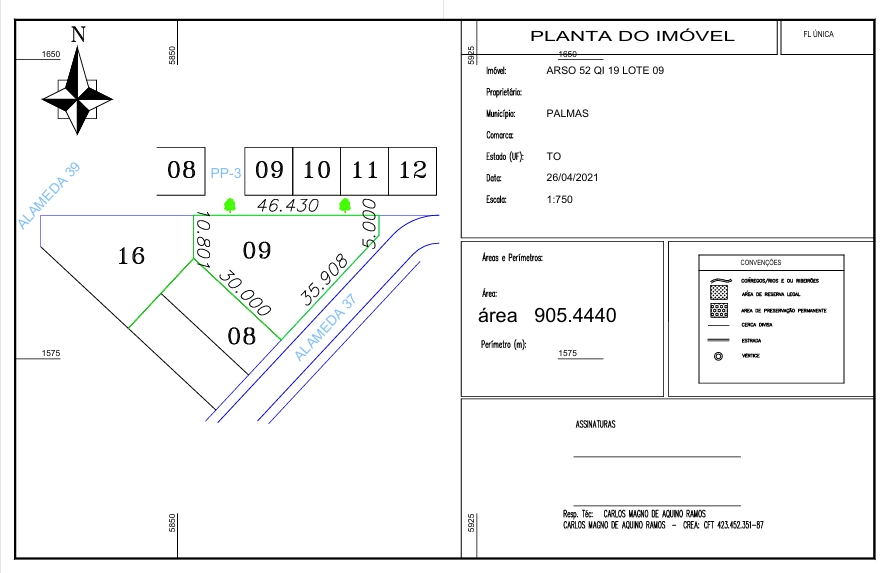 Lote com fundo para avenida, no final da rua. Lote 9 da alameda 37 com frente pra sudeste