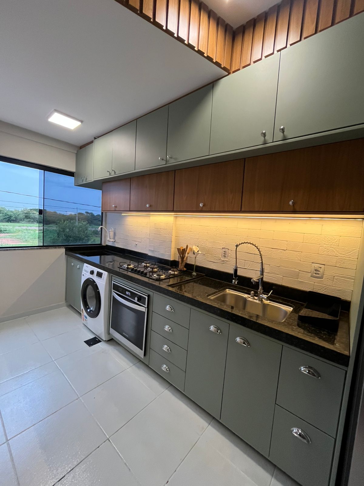 •Na cozinha permanecem fogão, forno e máquina de lavar